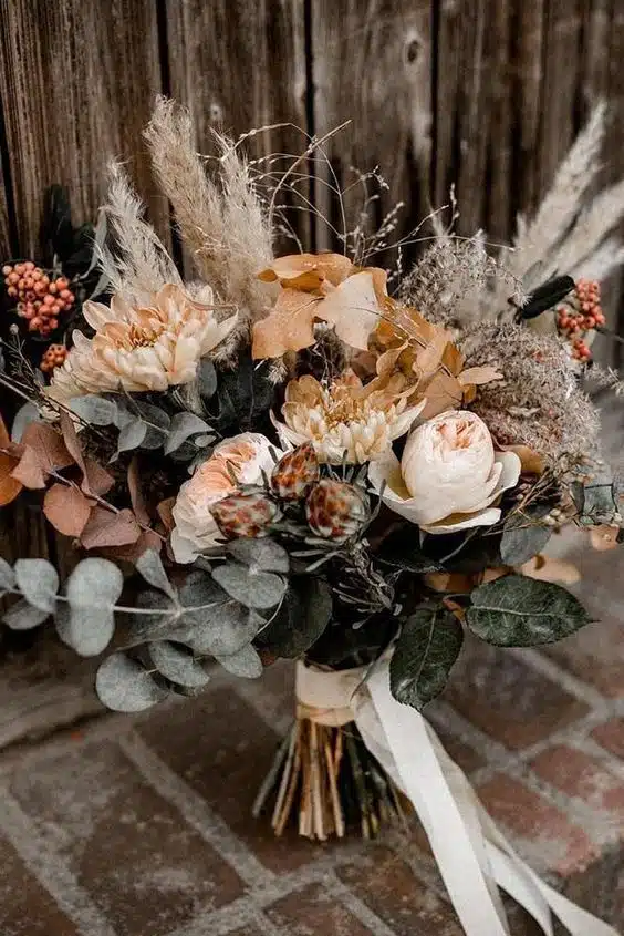 Te recomendamos que sean hechos de flores secas o mejor conocidas como «siempre vivas» así el recuerdo durará por muchos años más. Sinembargo, si prefieres hacerlo de flores naturales también es posible. Únicamente debes de cortar el tallo de las flores no más de 3 cms y agruparlas en un ramillete. posteriormente, debes atarlas con un alambre o cordel para fijarlas y finalmente añadir una cinta para que pueda ser sujetado a la muñeca.